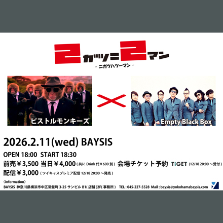 ▶︎開場 18:30  開演 19:00  │  当日 ¥3900  前売 ¥3400  配信 ¥2500